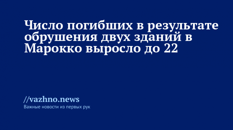 Ранее в этот же день сообщалось о 19 погибших и 16 пострадавших из-за обрушения двух жилых зданий в Марокко. Отмечалось, что здания долгое время находились в запущенном состоянии, что может объяснять причину происшествия.