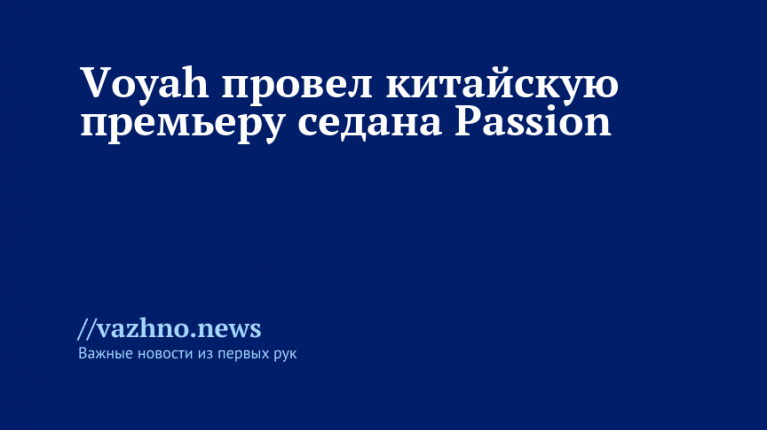 10 декабря пресс-служба бренда Voyah сообщила о китайской премьере седана Passion с индексом L.