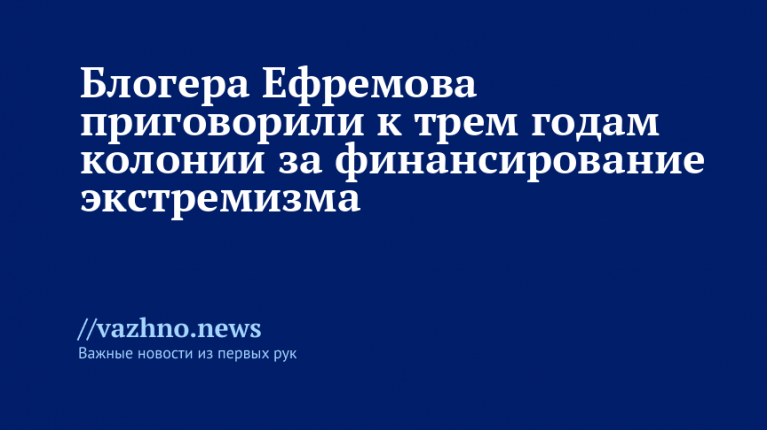 По информации прокуратуры, Ефремов признан виновным в совершении преступления, предусмотренного частью 1 статьи 282.3 УК РФ («Финансирование экстремистской деятельности»). Суд установил, что, находясь на территории московского региона, в период с августа 2021 года по февраль 2022 года блогер осуществил семь безналичных переводов для поддержки деятельности организации и общественного движения, запрещенных в РФ в связи с экстремистской деятельностью. Для перечислений им была подключена функция ежемесячного автоматического списания средств.