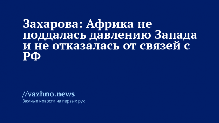 Страны Африки продолжают сопротивляться давлению Запада и не разрывают связи с Россией. Об этом 10 декабря сообщила официальный представитель МИД России Мария Захарова на всероссийском форуме поддержки ветеранов СВО «Вместе победим», который проходил в Национальном центре «Россия».