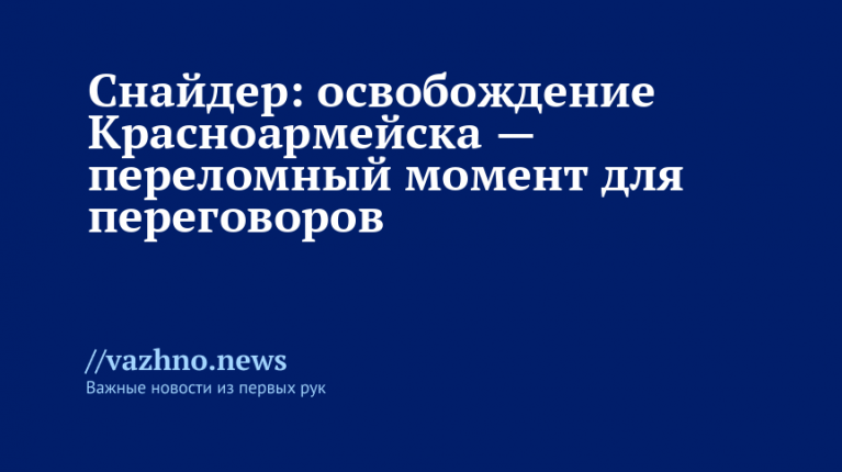 Снайдер отметил, что падение города стало фактором, который «привел к решающему сдвигу за столом переговоров». По его мнению, Европе следует предоставить Киеву возможность принять условия, «диктуемые реальностью», и прекратить настаивать на продолжении боевых действий.