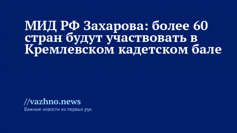 В столицу — в Москву — прибыли представители свыше 60 государств, чтобы участвовать в юбилейном, десятом по счету, Международном Кремлевском благотворительном кадетском бале. Официальный представитель МИД РФ Мария Захарова сообщила об этом журналистам 10 декабря.