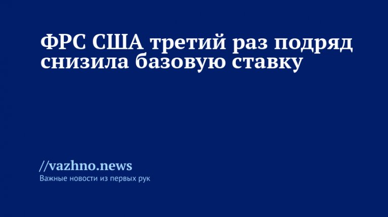 Федеральная резервная система США по итогам заседания снизила базовую ставку до 3,5–3,75% годовых. Об этом 10 декабря сообщается в заявлении, размещенном на сайте регулятора.