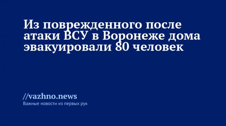 После удара Вооруженных сил Украины (ВСУ) по Воронежу в одном из пострадавших жилых домов была организована эвакуация 80 человек. Об этом 11 декабря сообщил губернатор Воронежской области Александр Гусев.