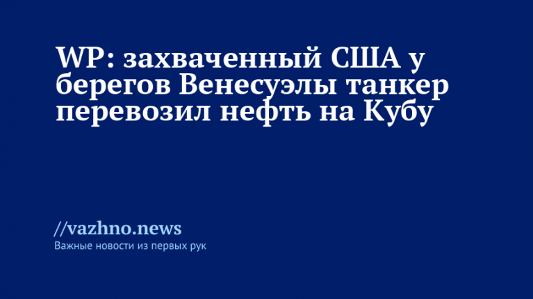 WP: танкер, захваченный у берегов Венесуэлы США, вёз нефть на Кубу