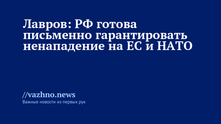 «Мы не вынашиваем никаких агрессивных планов в отношении ни членов НАТО, ни членов Евросоюза, готовы письменно, в юридическом документе зафиксировать соответствующие гарантии. Разумеется, на коллективной, взаимной основе», — заявил Лавров.