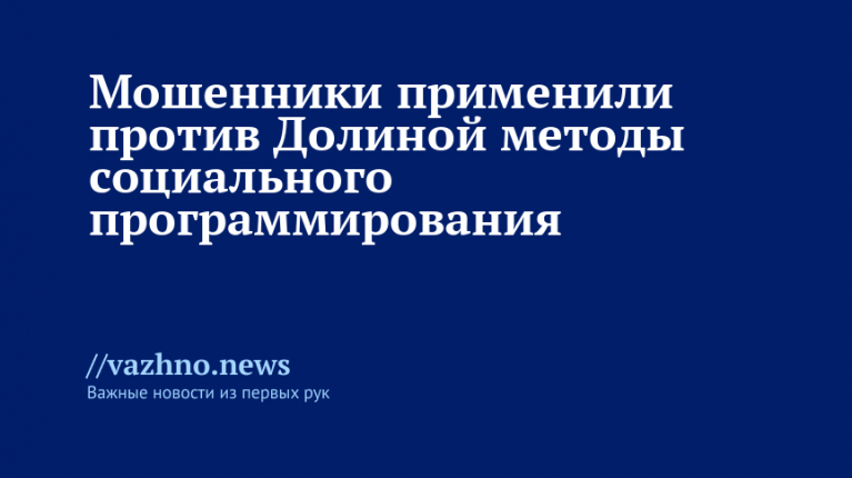 «Во время мошеннических действий в отношении Долиной, на нее оказывалось значительное психологическое воздействие, разные аспекты которого в вопросе обозначаются как «социальное программирование», «социальная инженерия», «нейролингвистическое программирование», «деструктивное воздействие», — сообщается в документе.