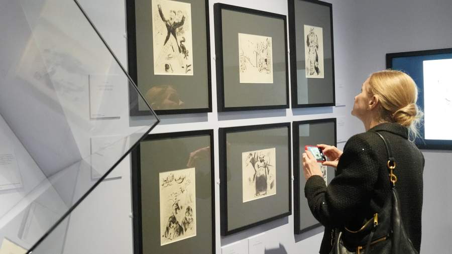 Висящие под потолком виолончели и валторны, реконструкция комнаты художника и Еврейский театр в миниатюре — всё это можно увидеть на выставке «Марк Шагал. Радость земного притяжения», пожалуй, главном проекте ГМИИ им. Пушкина в уходящем году. Открытый с должным пафосом (среди первых гостей — министр культуры Ольга Любимова) и претендующий на статус блокбастера, этот проект неизбежно провоцирует параллели с легендарной экспозицией того же музея 1987 года — одним из громких достижений Ирины Антоновой на посту директора. Однако, прогулявшись по залам, «Известия» убедились, что большого смысла в этом сравнении нет. Слишком уж они разные.