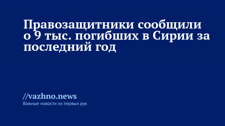 «По нашим данным, число погибших мирных жителей достигло 9 тыс., и эта цифра растет почти ежедневно», — сообщили в SOHR.