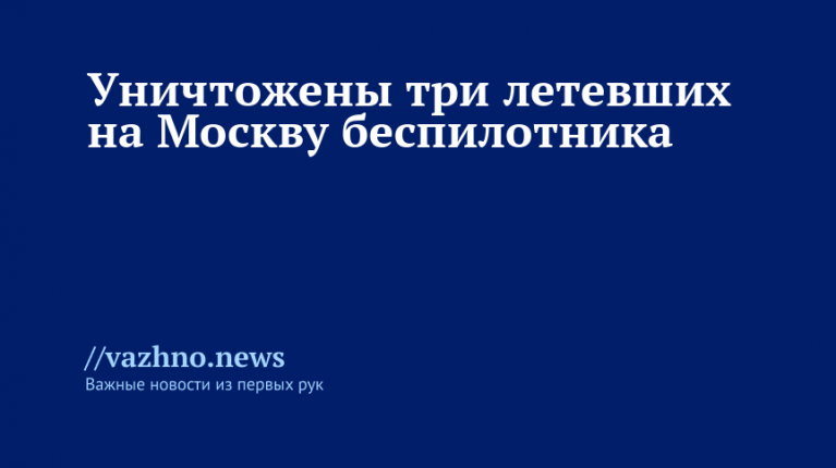 «Уничтожены еще три вражеских беспилотника, летевших на Москву», — говорится в сообщении.