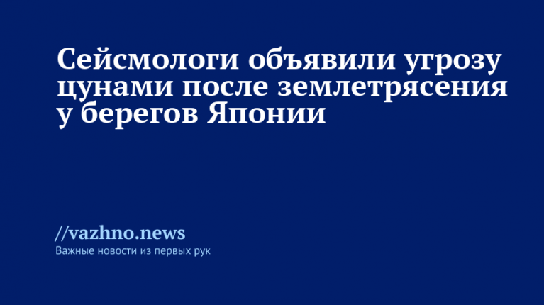 После землетрясения магнитудой 6,7 у берегов префектуры Аомори в Японии возникла угроза цунами. Об этом 12 декабря сообщает Японское метеорологическое агентство.