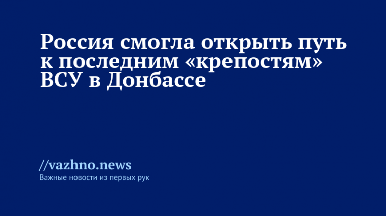 Россия открыла путь к последним «крепостям» ВСУ на Донбассе