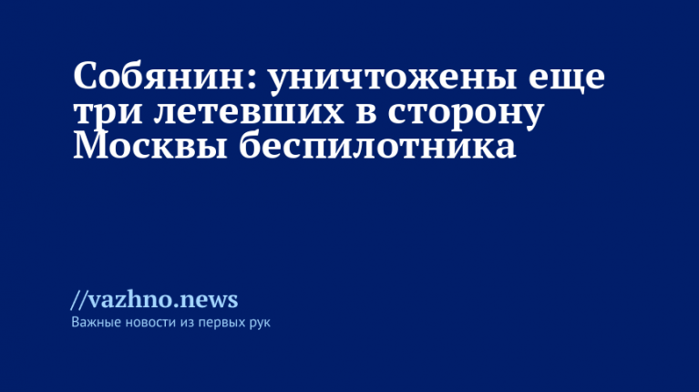 В этот же день Собянин сообщил о еще одном сбитом дроне, который летел в сторону столицы. До этого стало известно о трех уничтоженных беспилотниках.
