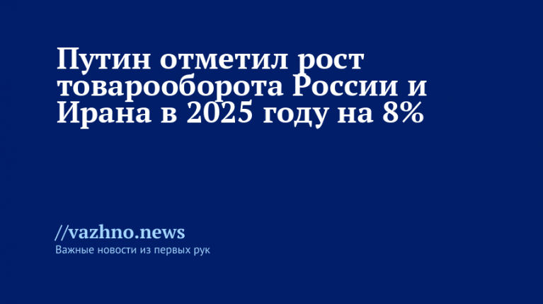Путин: товарооборот России и Ирана в 2025 году вырос на 8%