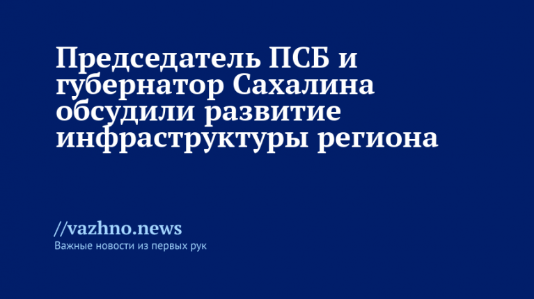 ПСБ работает в Сахалинской области с 2024 года и поэтапно наращивает объемы сотрудничества с правительством региона, отметил Фрадков. «Формируем серьезный задел для долгосрочного развития — в транспортной и инженерной инфраструктуре, ЖКХ, социальной и культурной сферах, спорте, развитии туристического потенциала», — рассказал председатель ПСБ. По его словам, банк обеспечивает жителям и бизнесу региона доступ к современным финансовым инструментам и решениям, а также содействует устойчивому росту промышленного сектора Сахалина, последовательно расширяя возможности экономического развития области.