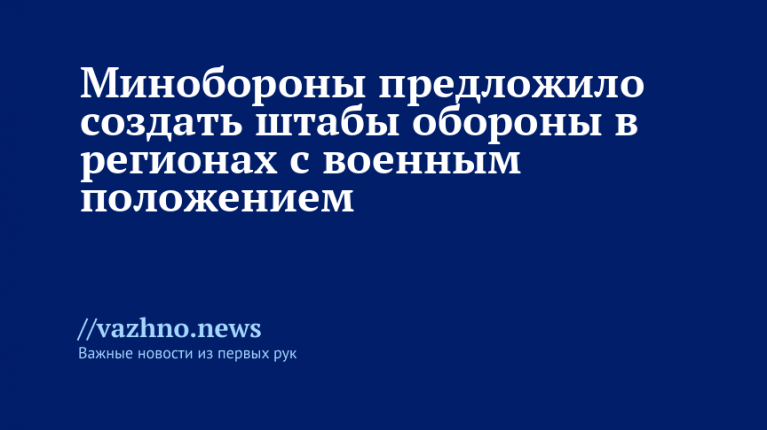Министерство обороны России предложило создать штабы обороны на уровнях субъектов РФ и муниципальных образований на случай введения военного положения на их территориях. Соответствующий проект федерального закона опубликован на федеральном портале проектов нормативных правовых актов.