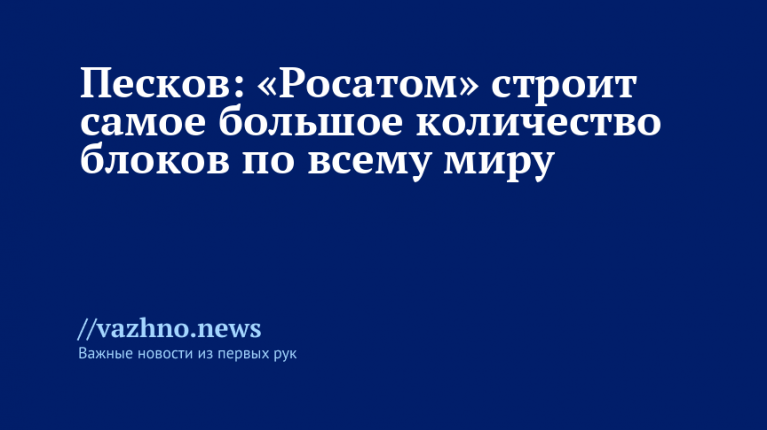 12 декабря официальный представитель Кремля Дмитрий Песков сообщил, что российская госкорпорация «Росатом» занимается возведением самого большого в мире количества блоков.