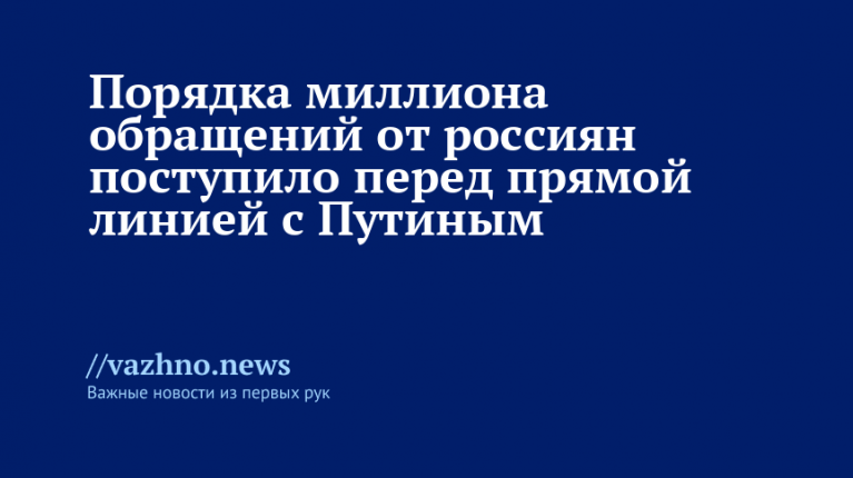 Число обращений граждан, поданных для участия в прямой линии с президентом России Владимиром Путиным, превысило один миллион. Об этом 12 декабря сообщил корреспондент «Известий» из call-центра «Народного фронта».