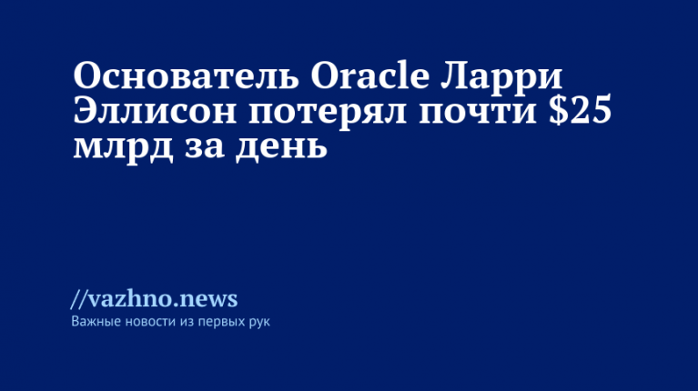 Агентство отмечает, что обвал котировок последовал за публикацией отчета о доходах, в котором зафиксирован резкий рост расходов на центры обработки данных для искусственного интеллекта. В итоге акции потеряли в цене около 11%, что обернулось для Эллисона убытком в $24,9 млрд.