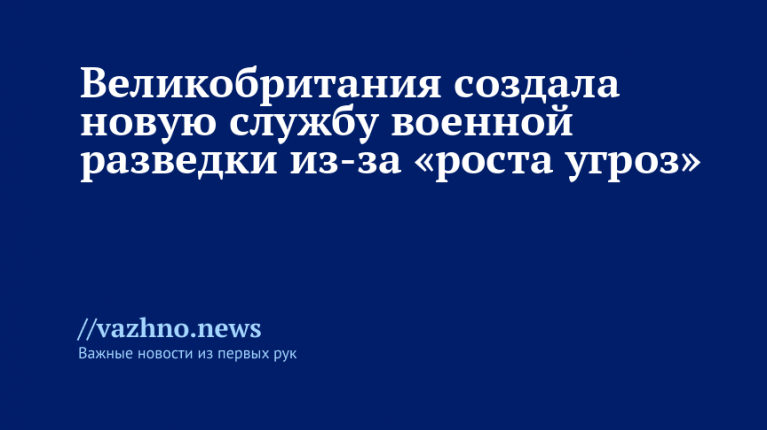 Британские власти сообщили о создании новой Службы военной разведки (MIS) на фоне «роста враждебных угроз». Сообщение об этом опубликовано 12 декабря на сайте министерства обороны Великобритании.
