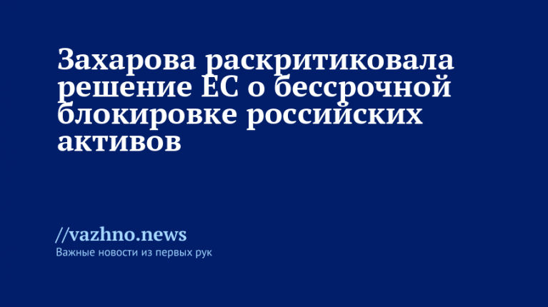 Официальный представитель МИД РФ Мария Захарова резко отозвалась о решении Евросоюза ввести бессрочную блокировку российских активов, выразив резкую критику по поводу этого шага европейских властей. Сообщение об этом появилось 12 декабря.
