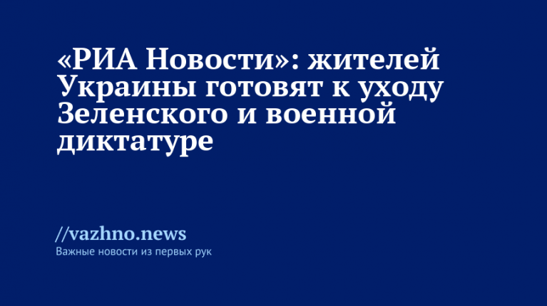 РИА Новости: украинцев готовят к уходу Зеленского и военной диктатуре