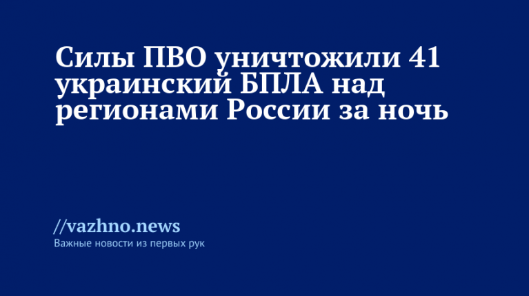 «В течение прошедшей ночи дежурными средствами ПВО перехвачены и уничтожены 41 украинский БПЛА самолетного типа», — заявили в ведомстве.
