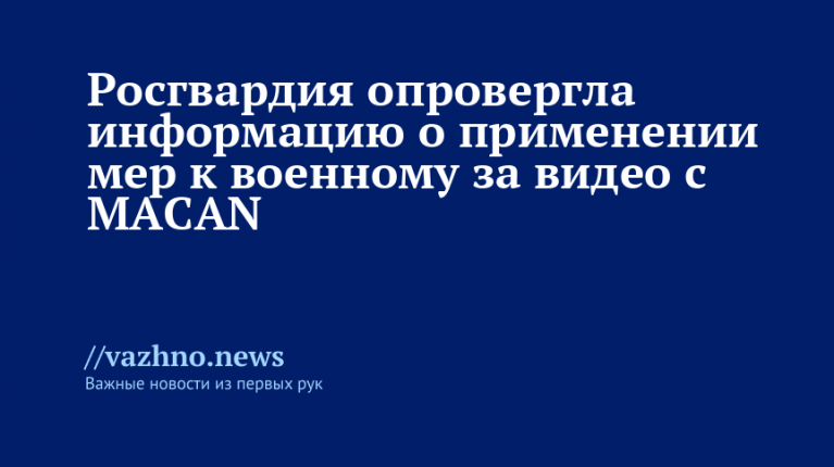 Росгвардия опровергла сведения о том, что к военнослужащему, снявшему ролик с участием рядового Андрея Косолапова, выступающего под псевдонимом MACAN, были применены дисциплинарные меры. Об этом 13 декабря сообщила пресс-служба Росгвардии в своем Telegram-канале.