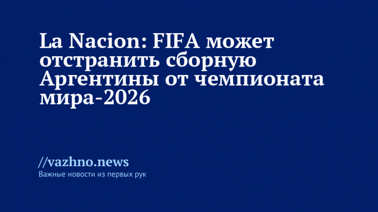 Газета La Nacion проинформировала, что Международная федерация футбола (FIFA) рассматривает возможность отстранения сборной Аргентины от чемпионата мира 2026 года.