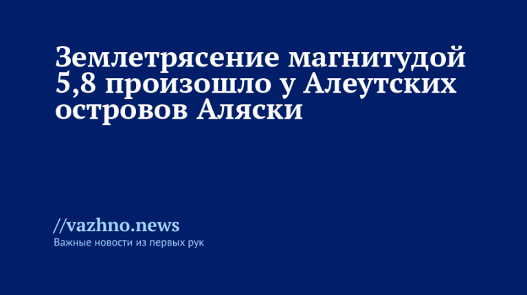 Неподалеку от Алеутских островов Аляски зарегистрировано землетрясение магнитудой 5,8. Об этом 13 декабря сообщает Немецкий исследовательский центр геонаук (GFZ).