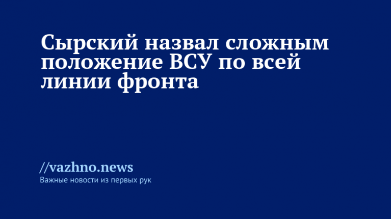 Сырский пояснил, что российская армия ведет наступление почти по всей линии боевого соприкосновения, и в отдельные дни число боестолкновений достигает 300. В этих условиях ВСУ по-прежнему остро испытывают нехватку техники, а физическое и моральное состояние личного состава не соответствует боевым требованиям.