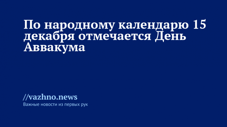 Православные христиане 15 декабря чтят память пророка Аввакума. В народе этот день называют «День Аввакума». Празднование было связано с домашними заботами и обрядами, направленными на охрану жилья от нечистой силы. Считали, что незадолго до зимнего солнцестояния граница между миром людей и потусторонним миром ослабевает, поэтому соблюдение традиций имело особую важность. «Известия» рассказывают о главных приметах и запретах этого дня.