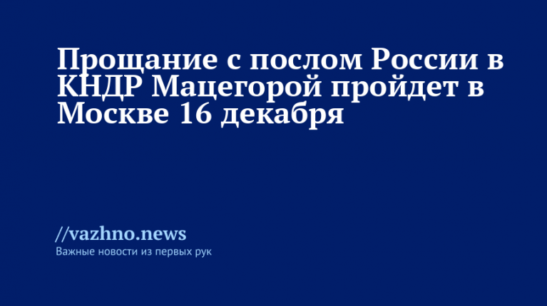 Прощание с послом в КНДР Мацегорой пройдет в Москве 16 декабря