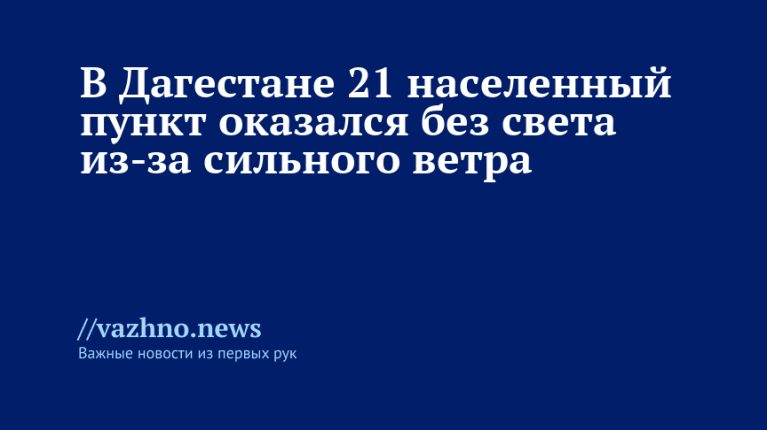 13 декабря Главное управление (ГУ) МЧС России по республике сообщает, что в Дагестане из‑за сильного ветра на линиях связи произошли обрыв и замыкание, в результате чего без электроснабжения остался 21 населенный пункт.