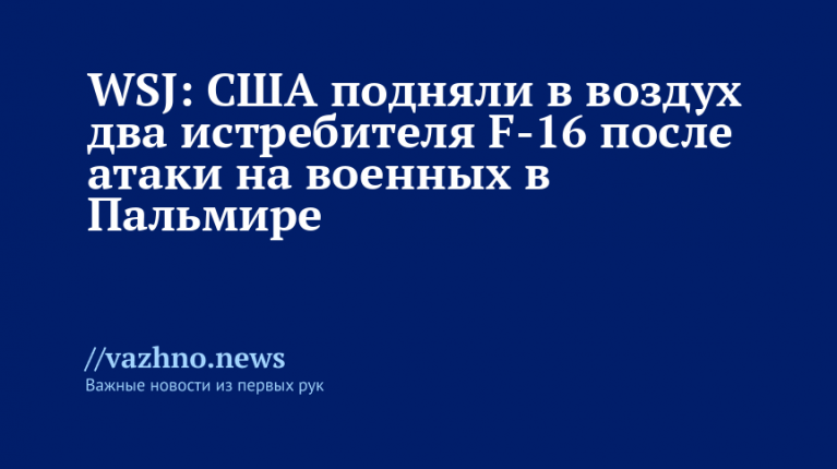 «США отправили два истребителя F-16 над Пальмирой», — говорится в публикации.