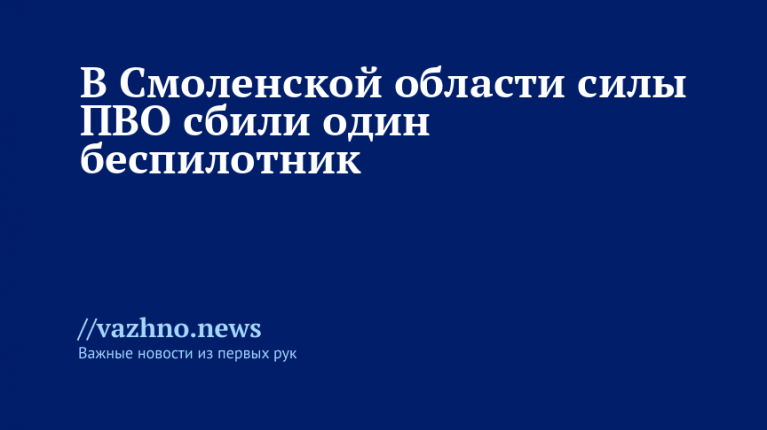 «Сегодня ночью силами ПВО Министерства обороны России на территории Смоленской области сбит один БПЛА. По предварительной информации, пострадавших и разрушений нет», — сказано в его Telegram-канале.