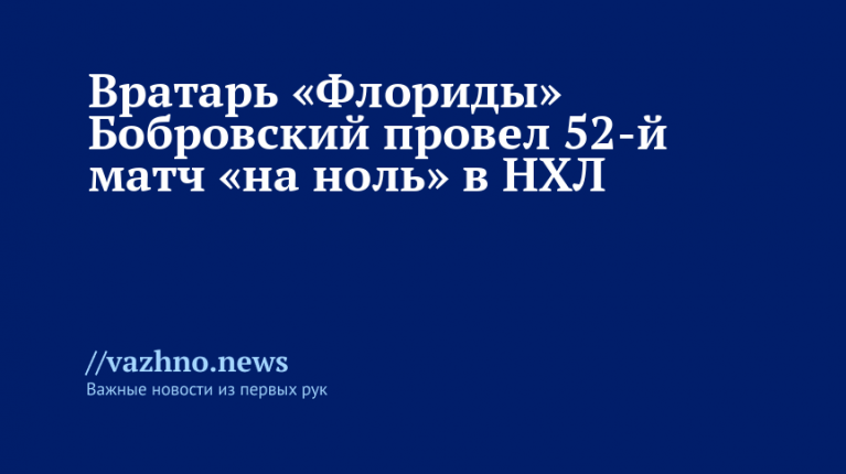 Бобровский отстоял 52-й «на ноль» матч в НХЛ за «Флориду»