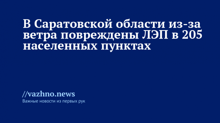 14 декабря губернатор Саратовской области Роман Бусаргин сообщил, что сильный ветер повредил линии электропередачи (ЛЭП) в 205 населенных пунктах региона.