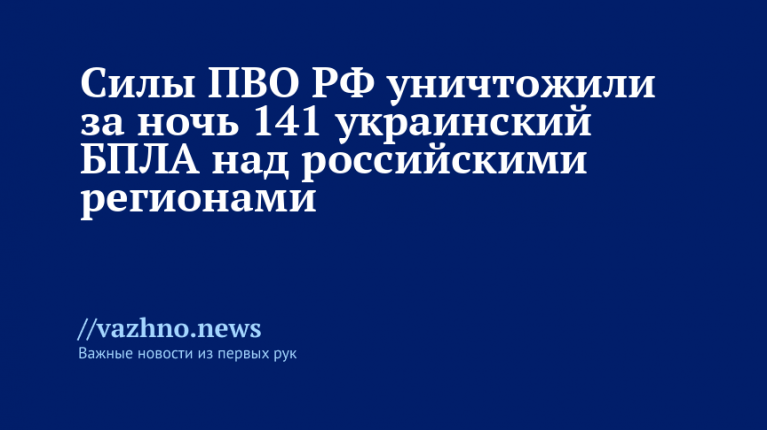 «С 23:00 мск 13.12 до 07:00 мск 14.12 дежурными средствами ПВО перехвачен и уничтожен 141 украинский беспилотный летательный аппарат самолетного типа», — сообщили в ведомстве.