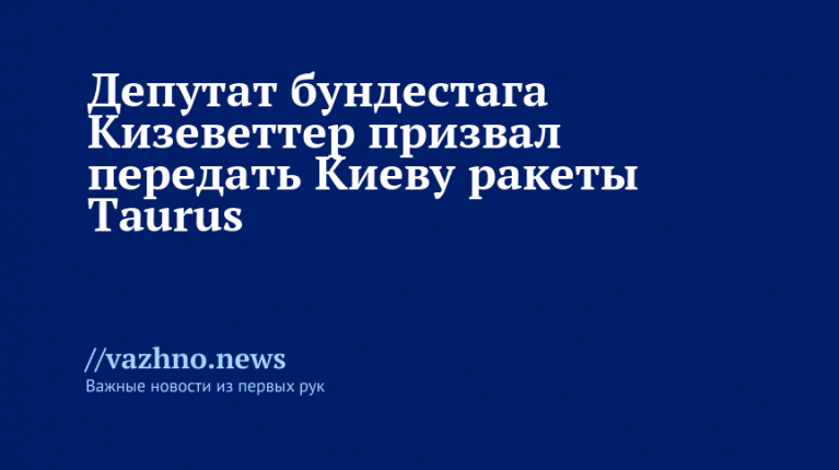 14 декабря депутат бундестага от Христианско-демократического союза Родерих Кизеветтер заявил о необходимости передать Украине дальнобойные ракеты Taurus и обеспечить ей надежные гарантии безопасности.