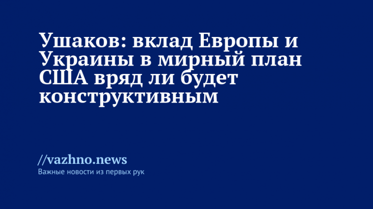Ушаков подчеркнул, что Россия в вопросе урегулирования на Украине «очень четко изложила свою позицию, которая была понятна американцам». По его словам, Европа и Украина способны внести в план предложения по территориям, которые для Москвы окажутся неприемлемыми. В таком случае, предупредил он, у Москвы появятся «очень резкие возражения».