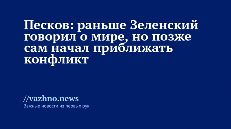 «Стало очевидно, что никто не собирается [выполнять Минские соглашения], и вместо мира он (Зеленский. — Ред.) стал приближать конфликт», — сказал Песков в интервью журналисту Павлу Зарубину.