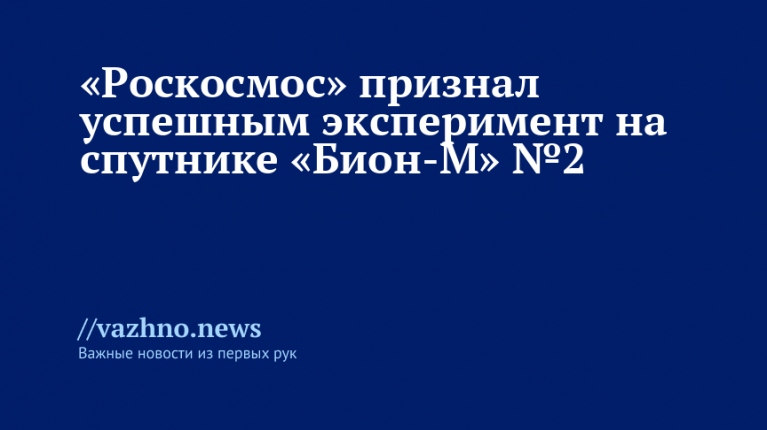 «Государственная комиссия подтвердила: полет космического аппарата «Бион‑М» № 2 признан успешным. Все бортовые системы отработали в штатном режиме, а научная орбитальная программа выполнена в полном объеме», — указано в Telegram-канале госкорпорации.
