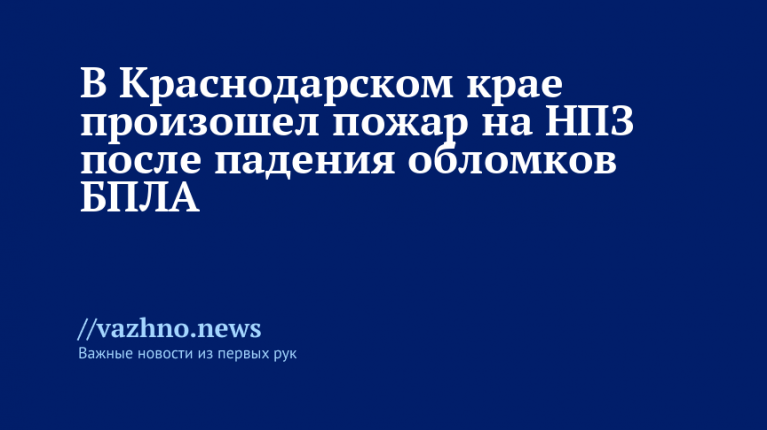 «В Северском районе фрагменты беспилотников вызвали пожар рядом с территорией Афипского НПЗ. Повреждений и пострадавших нет. За территорией НПЗ в районе одного из контрольно-пропускных пунктов загорелась газовая труба», — сказано в Telegram-канале оперштаба.