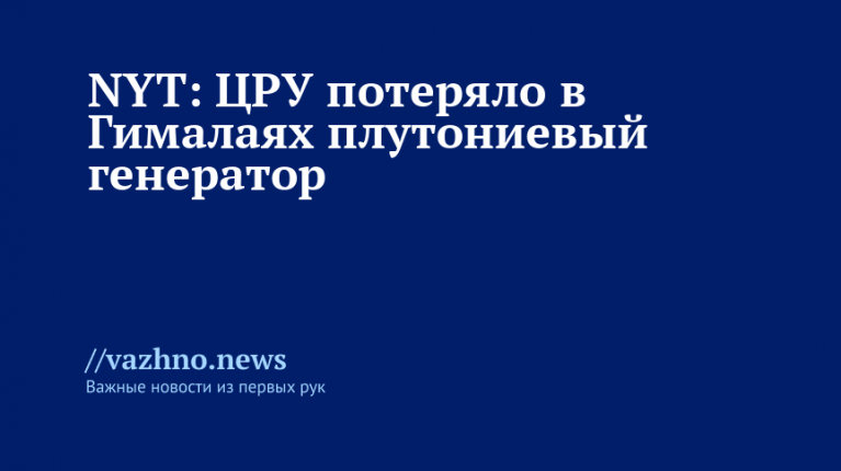 Центральное разведывательное управление(ЦРУ) США в 1965 году утратило в Гималаях плутониевый генератор, который применялся в тайной операции по слежке за Китаем. Об этом 14 декабря написала газета The New York Times (NYT).