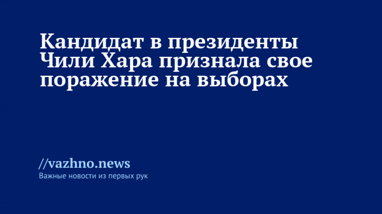 Кандидат от правящей левоцентристской коалиции «Единство для Чили», Жанетт Хара, поздравила оппозиционного консервативного политика и будущего президента Чили Хосе Антонио Каста с победой во втором туре выборов.