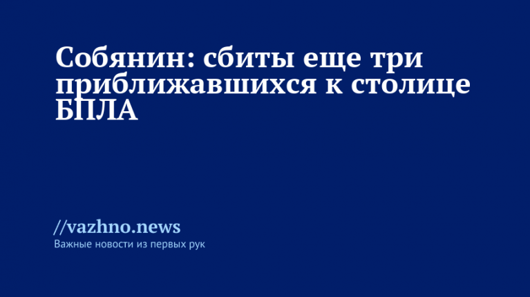 Ранее в этот же день Собянин уже сообщал о трех сбитых над Москвой беспилотниках. В сумме за ночь число отраженных атак достигло 15-ти, при этом мэр отмечал, что специалисты экстренных служб работают на местах падения обломков и устраняют последствия.