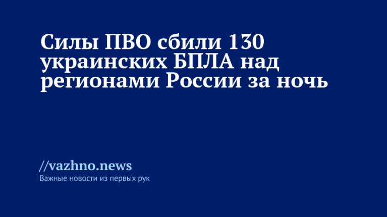 «В течение прошедшей ночи в период с 23:00 мск 14 декабря до 7:00 мск 15 декабря дежурными средствами ПВО перехвачены и уничтожены 130 украинских БПЛА самолетного типа», — говорится в заявлении.
