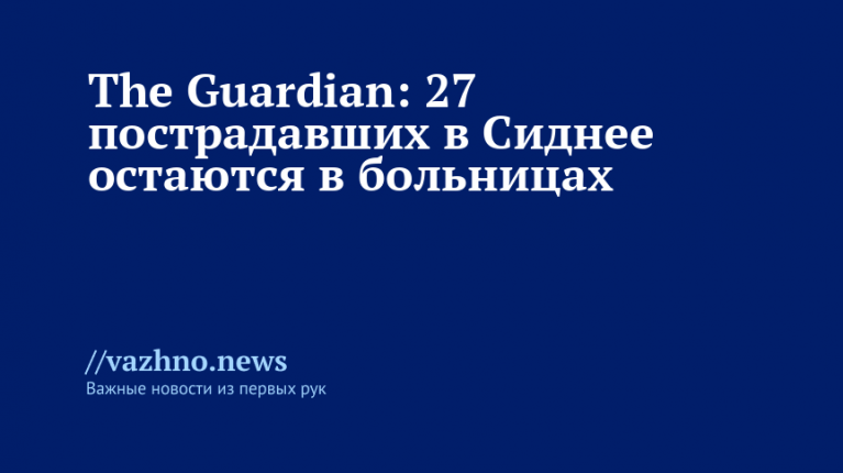 27 человек, пострадавших при теракте на пляже Бондай в Сиднее, по-прежнему находятся на лечении в госпиталях. Об этом 14 декабря сообщила газета The Guardian.