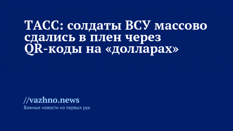 ТАСС: ВСУ массово сдались в плен из‑за QR‑кодов на «долларах»